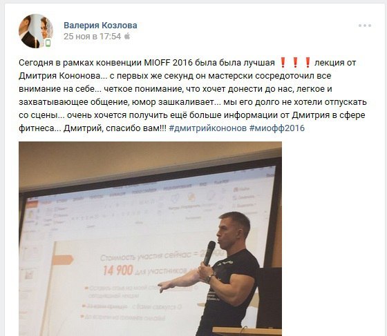 Валерия Козлова, г. Красноярск: "Лекция Дмитрия Кононова для тренеров - лучшая на MIOFF - 2016!"